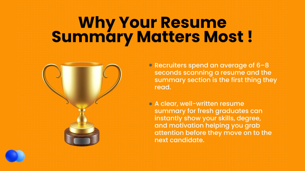 Writing a great resume summary for fresh graduates can be challenging when you don’t have much work experience. But even without a long career history, you can craft a powerful summary that highlights your education, skills, and motivation. In this guide, you’ll learn how to write a strong resume summary for freshers and graduates, with examples and expert advice to help you stand out.